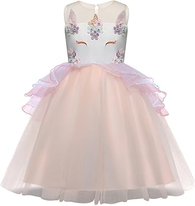 Yiiquanan Nina Princesa Vestido Unicornio De Flor Volantes Vestidos De Princesa Para Boda Y Fiesta Luz Rosa Asia 140 Amazon Es Ropa Y Accesorios