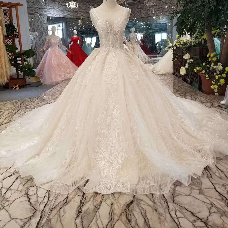 2020 Vestido De Fiesta Mullido Vestidos De Novia Luz Champan Encaje Con Cuentas Vestidos De Boda De Lujo Vestido De Novia Con Mangas 100 Fotos Reales Vestidos De Novia Aliexpress