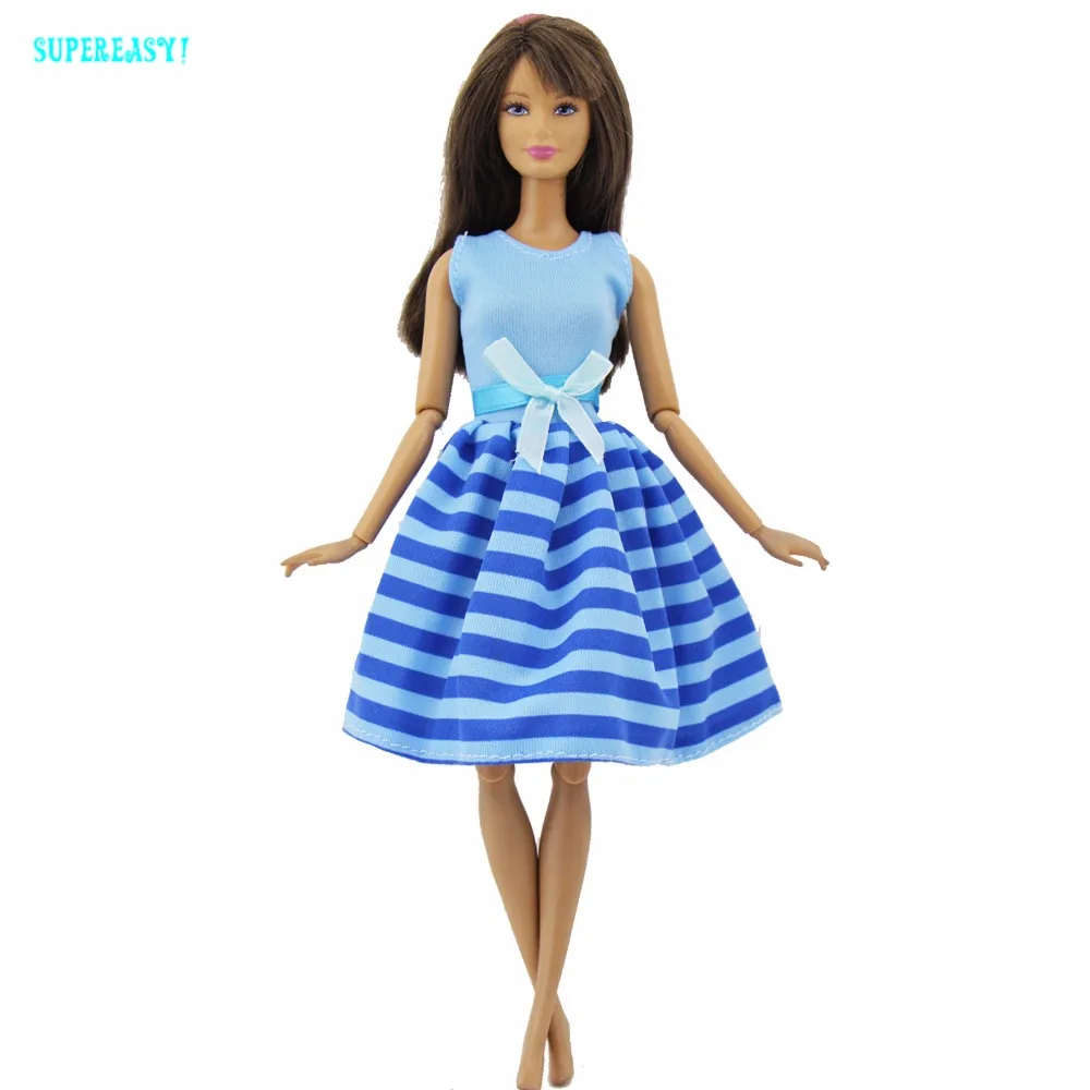 Vestido Azul Moderno Hecho A Mano Para Fiesta De Boda Cita Cena Vestido Con Diseno De Rayas Ropa Con Lazos Para Accesorios De La Muneca Barbie Clothes For Barbie Clothes For Barbie Dollsfor Barbie