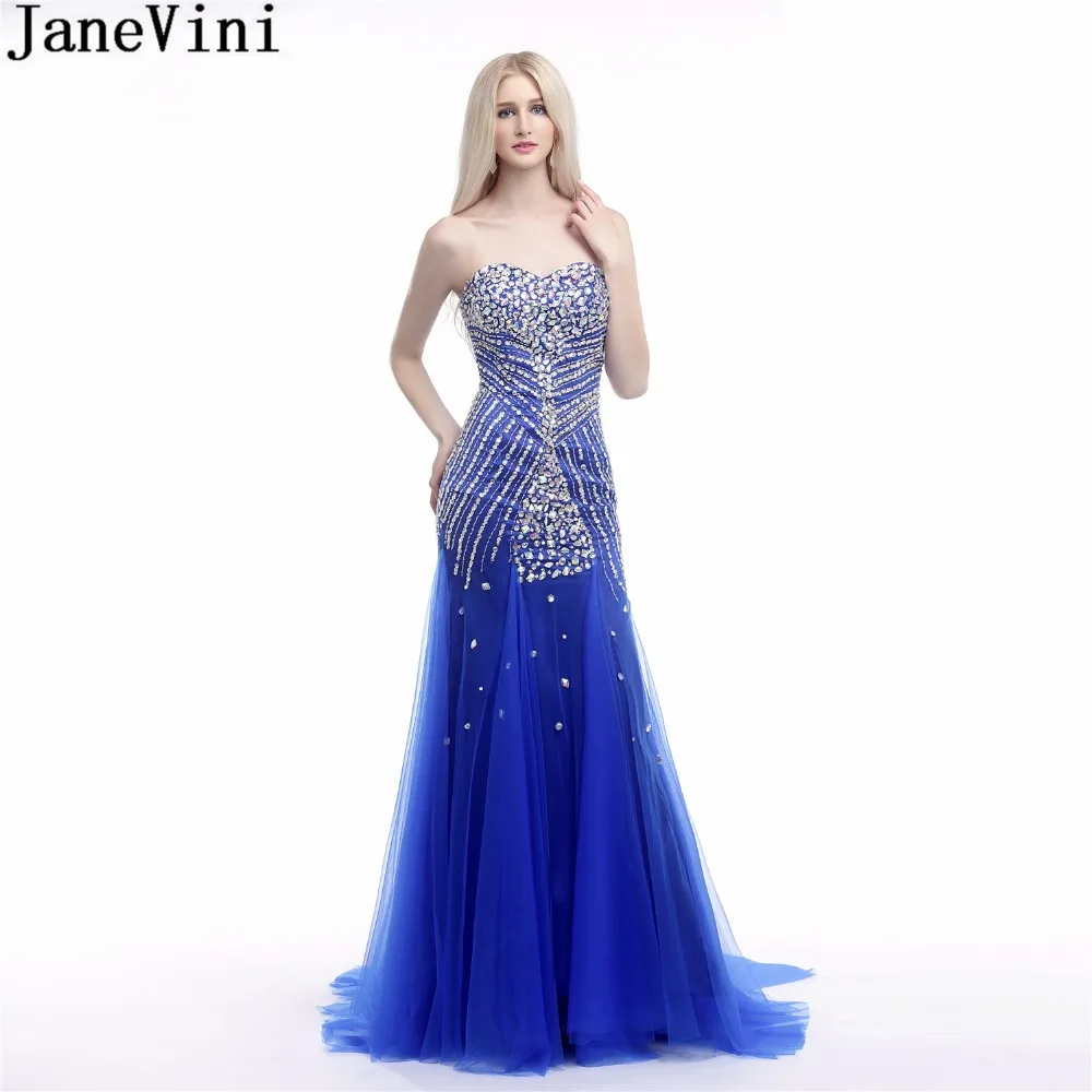 Chanym95warrior Comprar Vestidos De Graduacion Mujer Azul Real Janevini Brillantes Con Cuentas Cristal Para Fiesta Boda Vestido Dama Honor Sirena Largos Formales Cena Online Baratos