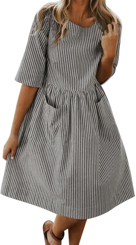 Usstore Clearance Venta De Mujeres Vintage Vestidos De Rayas Sueltos Con Bolsillo Vestido Casual Vestido Large Negro Amazon Es Deportes Y Aire Libre
