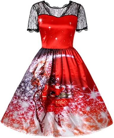 Mingger Vestido De Fiesta De Navidad Sexy Con Correa Sin Tirantes Para Mujer Diseno De Alce De Papa Noel Impresion 3d Vestido Vintage De Los Anos 80 Amazon Es Ropa Y Accesorios