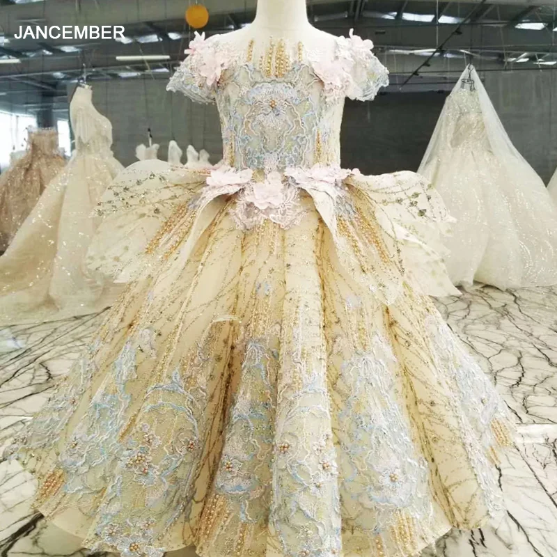 Htl0547 Vestido De Lujo Para Comunion Vestido De Baile De Cuentas Doradas Para Ninas Vestidos De Desfile De Flores Para Ninas Vestidos Primera Comunion Ni As 2020 Vestidos Floreados De Nina Aliexpress