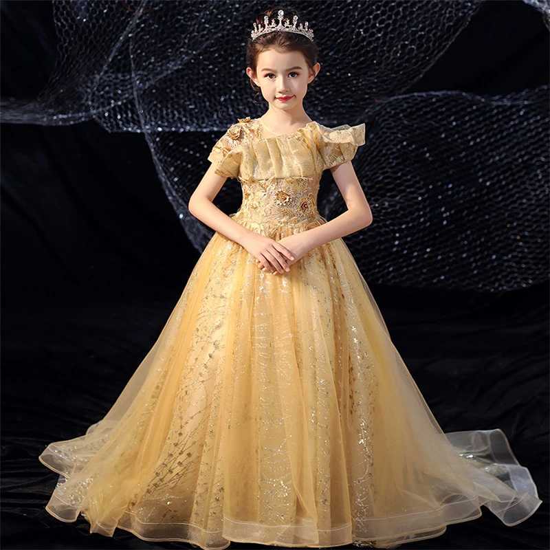 Precioso Vestido De Lujo Para Nina Color Dorado Para Fiesta De Cumpleanos Cola Larga Modelo Desfile Pasarela Disfraz Para Nino 2019 Vestidos Aliexpress