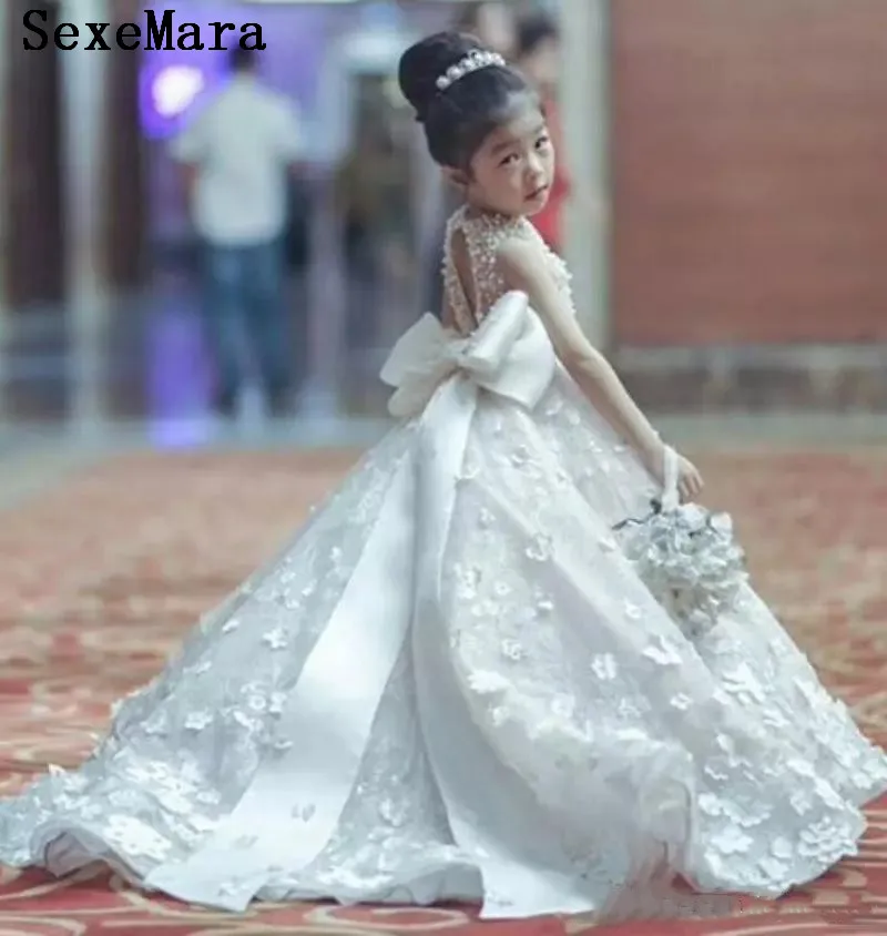 Lujo 2019 Arabe Flor Chica Vestidos Perlas Ninas Desfile Vestidos Hermosa Princesa P Vestido Para Ninas Boda Vestidos Para Primera Comunion Vestidos Para Ninas