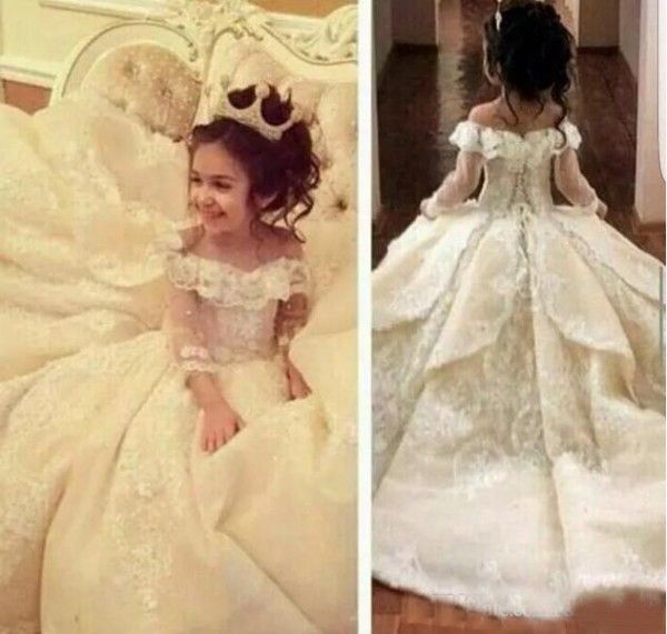Compre Vestidos De Princesa De Lujo Para Ninas De Flores Fuera Del Hombro Ilusion Manga Larga Apliques De Encaje Vestido De Banquete De Boda Novia Pequena Volantes A 95 8 Del Weddingfactory