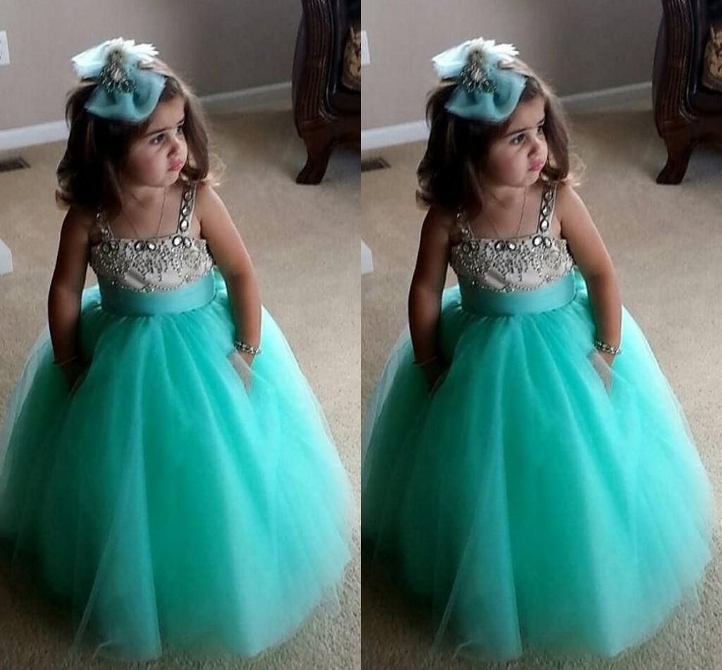Compre Vestidos De Nina De Las Flores De Verde Menta Linda 2017 Una Linea De Espaguetis Con Cuentas De Cristales Fluffy Tulle Ninas Largas Vestido Del Desfile Para La Fiesta De Los