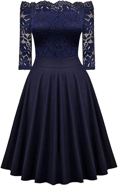 3 4 Vestido Vestido Brazo De Mujer Para De Encaje Moda Completi Sin Tirantes Vestido De Noche Hasta La Rodilla Vestido Elegante De Audrey Hepburn Vestido Festivo Vestido De Fiesta Vestido De