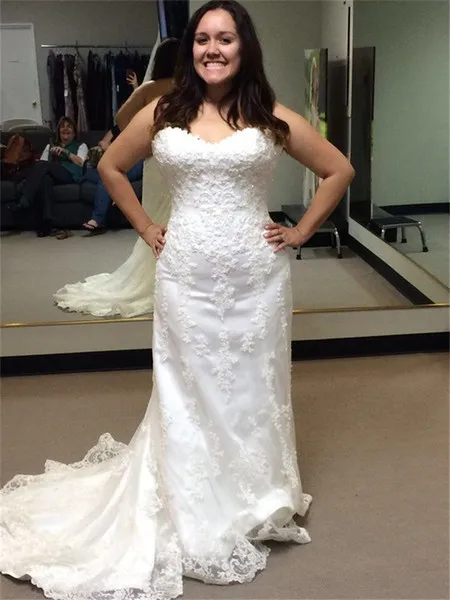 Recepcion Saten A Line Princess Rebordear Correas Cruzadas Vestidos De Novia Tallas Grandes Veaul