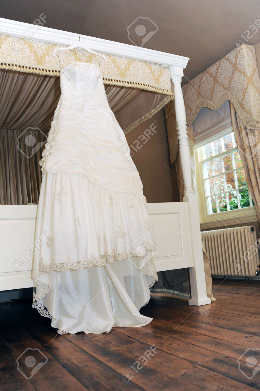 Del Vestido De Boda Que Cuelga En La Sala De Recepcion Fotos Retratos Imagenes Y Fotografia De Archivo Libres De Derecho Image 14008786