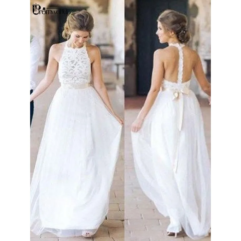 Vestido De Novia Blanco Sencillo Para Playa Boda Cuello Halter Encaje Espalda Descubierta Largo Tul Corte En A Vestidos De Novia Aliexpress