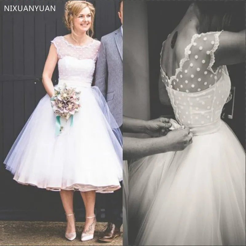 Vestido De Novia Sencillo Para Verano 2020 Para Playa Sin Mangas Lunares Tul Longitud Del Te Vestidos De Novia Economicos