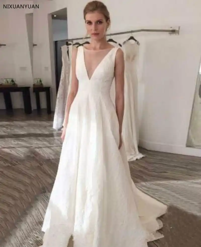 Vestido De Novia Sencillo Con Tirantes Finos Y Escote En V Profundo Encaje Vintage Sexy Bohemio Para Playa Verano 2020 Vestidos De Novia Aliexpress