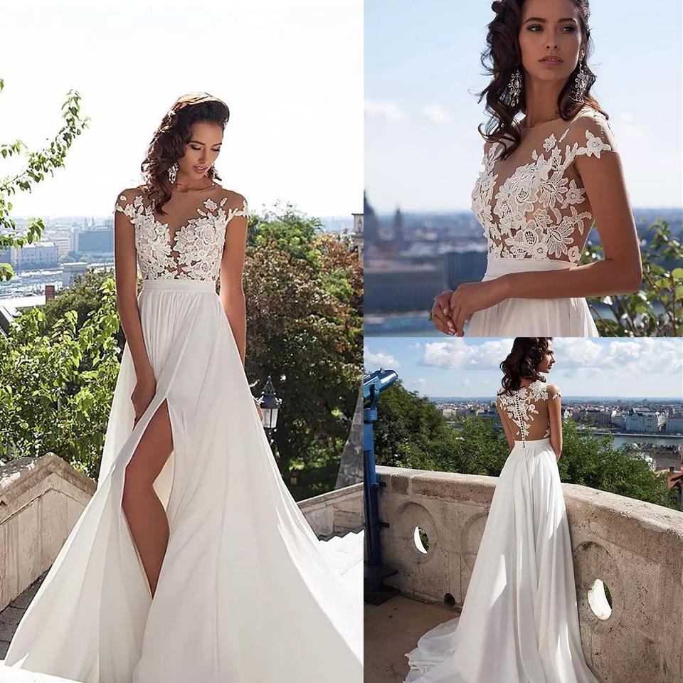 Vestido De Novia De Tul Para Verano Vestidos De Novia Bohemia Con Ilusion De Encaje Y Boton En La Espalda 2019 Vestidos De Novia Aliexpress