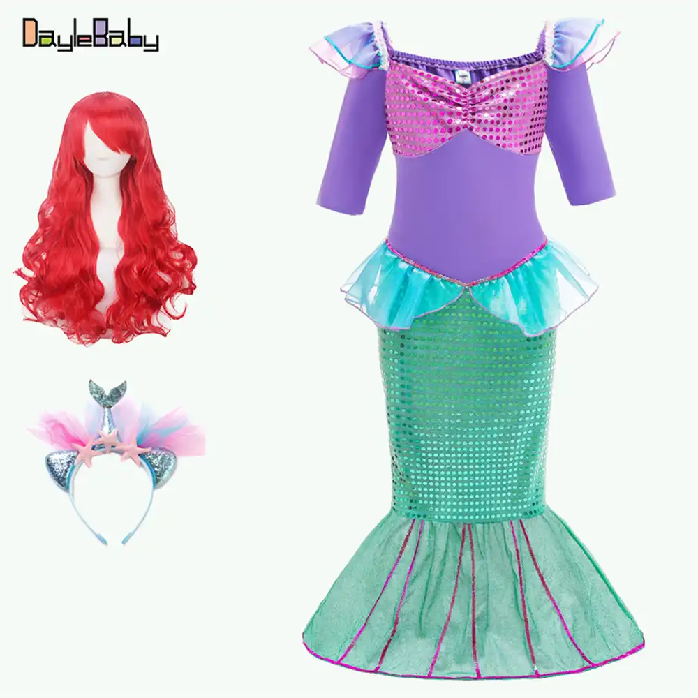 Vestido De Fiesta De Cumpleanos De Ariel Para Ninos Vestidos De Sirena Con Hombros Descubiertos Y Parte Superior De Tubo Para Ninas Pequenas Disfraz De Princesa Ariel Con Lentejuelas Vestidos Aliexpress