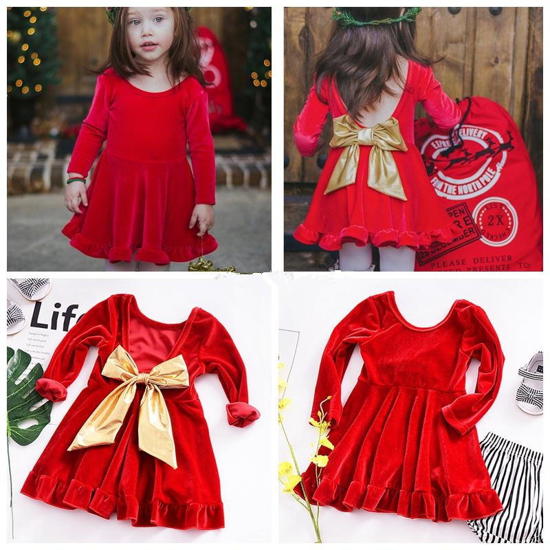 2018 Ano Nuevo Vestido De Terciopelo Para Ninas Backless Bowknot Rojo Ninos Vestido De Manga Larga A Line Vestidos Bebe Fiesta Princesa Ropa M Eudelcan Org