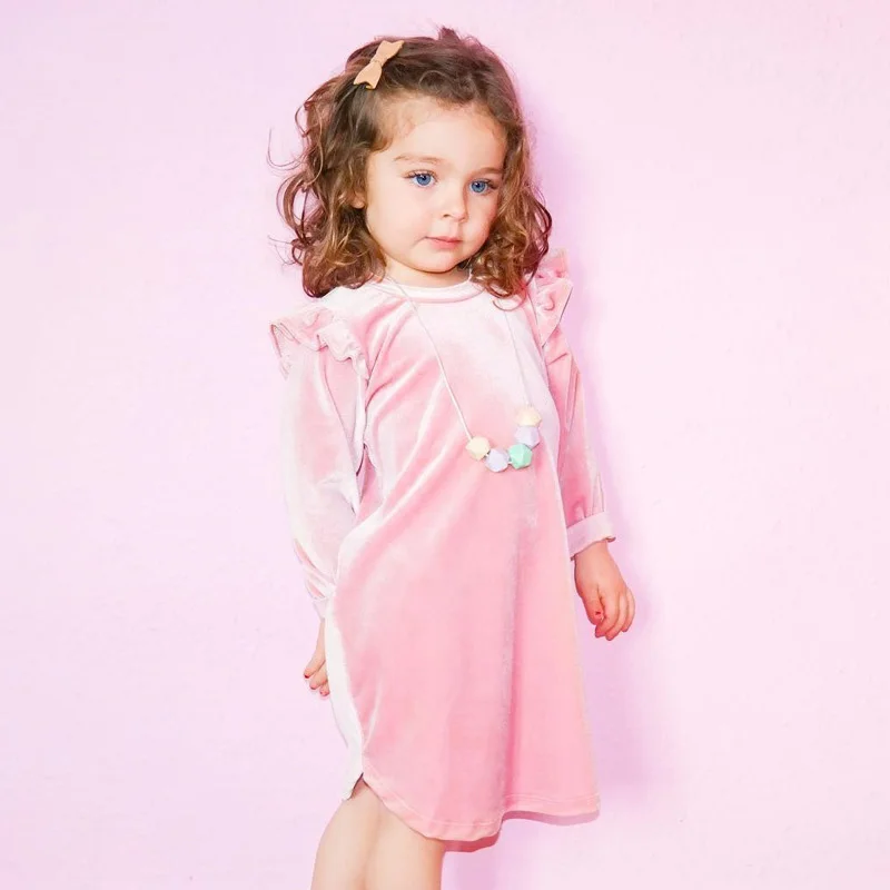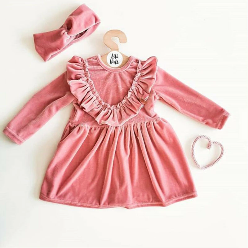 Vestido Para Ninas De Terciopelo Rosa Princesa Volantes De Manga Larga Vestidos Para Ninas Ropa Para Bebes Vestidos Princess Girl Dress Girls Dressprincess Girl Aliexpress