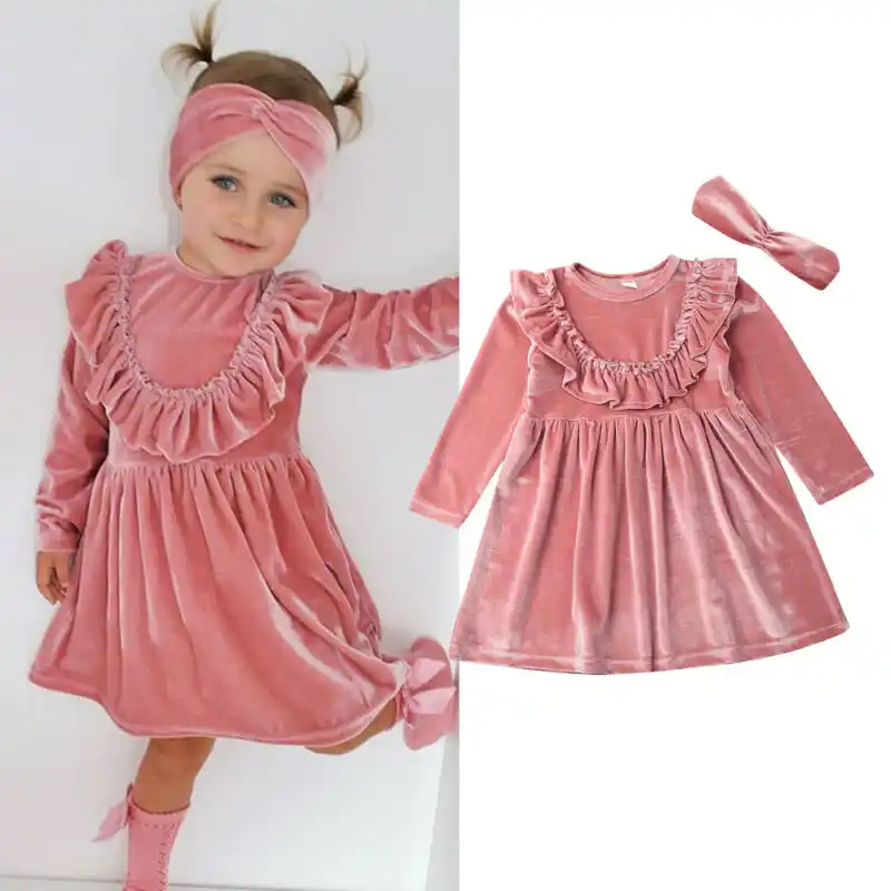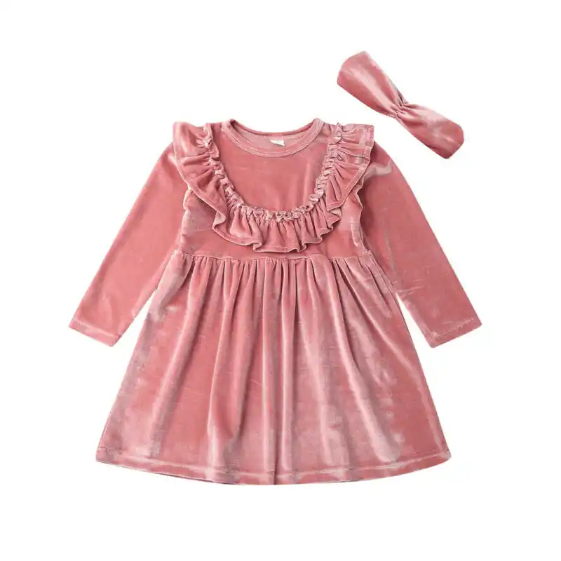 Vestido De Princesa De Terciopelo Con Volantes Para Nina De 1 A 6 Anos 2 Uds Rosa Liso Diadema Traje De Fantasia Vestidos Aliexpress