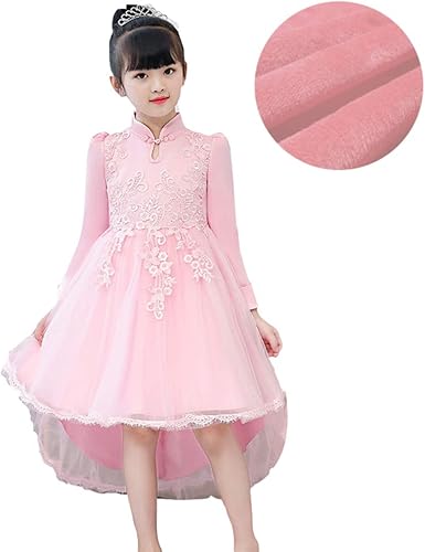 Lserver Vestido Mullido De Manga Larga Para Ninas Princesas Vestido Elegante Asimetrico Para Ceremonias Rosa Terciopelo 150cm 10 11 Anos Amazon Es Ropa Y Accesorios