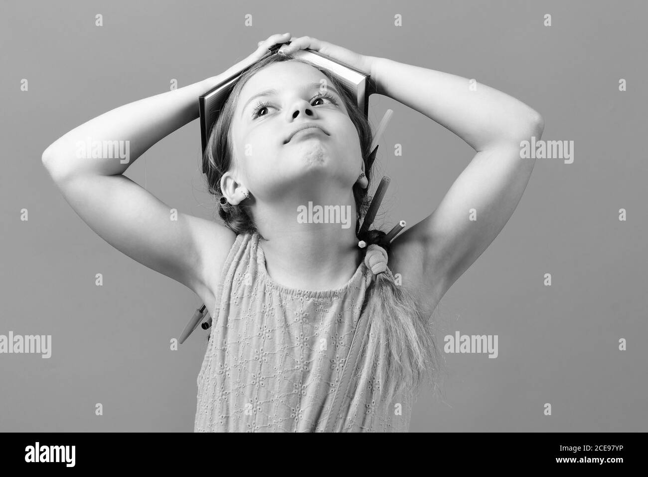 Nino Vestido De Rosa Con Trenzas Y Lapices En El Cabello Nina Con Cara De Ensueno
