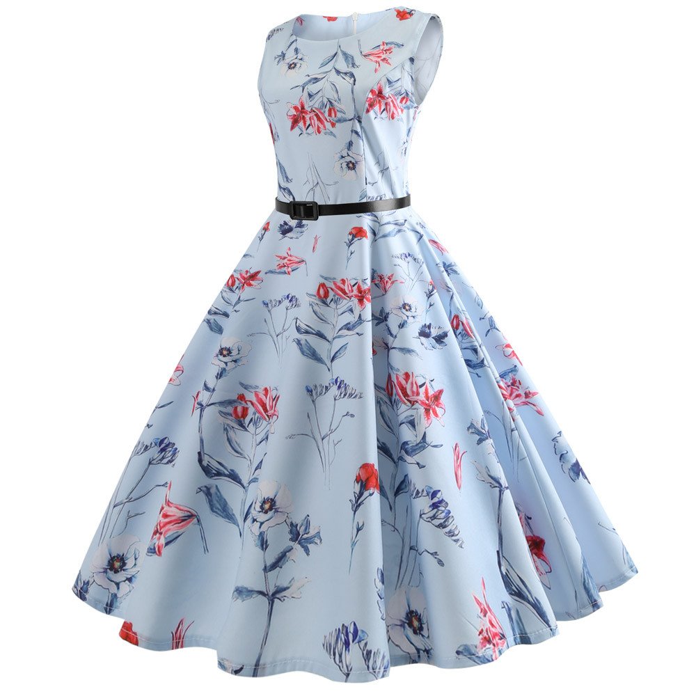 Vestidos De Fiesta Para Bodas Mujer Verano Elegantes Vestido Anos 50 Vintage Rockabilly 1950s Swing Coctel Plisado Sin Mangas Cuello Redondo Impresion Floral Talle Alto Una Linea Vestido Coctel Amazon Es Ropa Y