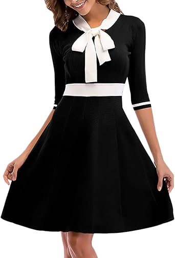 Vestidos De Mujer Vestidos De Fiesta Cortos Elegantes 3 4 Manga Ninas Ropa Bowknot Slim Fit Vestidos Anos 50 A Linea Vintage Moda Vestido Corto Amazon Es Ropa Y Accesorios
