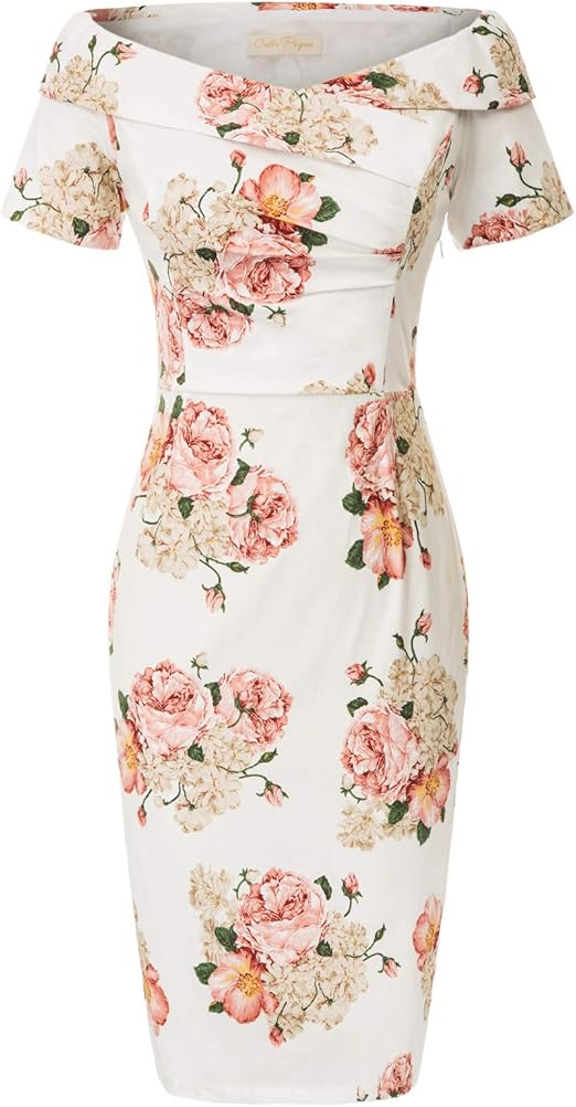Belle Poque Vestido Elegante Para Mujer Estilo Vintage De Los Anos 50 Con Hombros Descubiertos Estampado Vestido De Tubo Para Fiesta De Graduacion Amazon Es Ropa Y Accesorios