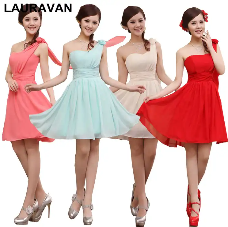 Sugerente Vestido Formal Para Damas De Honor Vestidos Para Novias En Rojo Y Azul Elegantes Para Fiesta De Damas De Honor De Gasa Vestidos Cortos De Un Hombro Color Champan Vestidos Para Dama