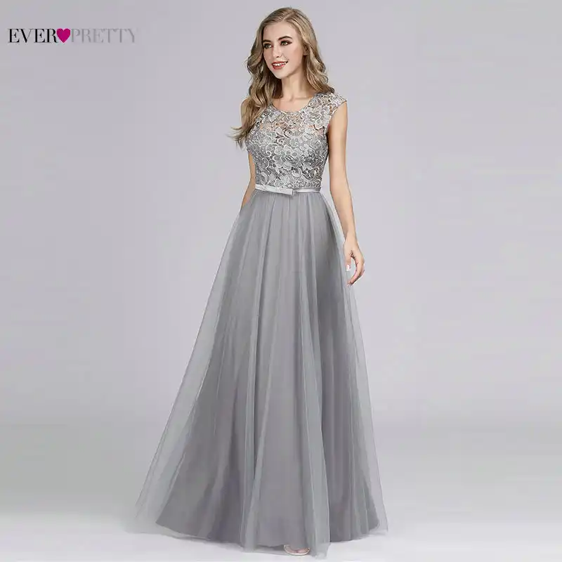 Vestido Largo De Encaje Para Dama De Honor Elegante Vestido Formal Gris Burdeos Con Cuello Redondo Para Fiesta De Boda Vestidos Para Dama De Honor Aliexpress