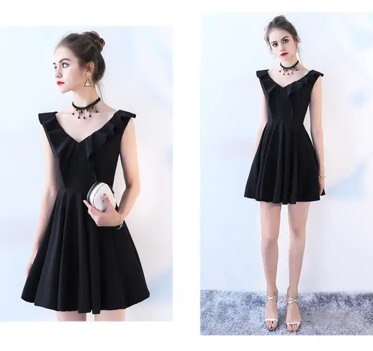 Joven Clasica Para Damas Vestidos De Graduacion Negros Encantador Vestido De Fiesta Cuello En V Vestido Formal Corto Vestidos De Noche Collar De Regalo Evening Dress Formal Dressvestido De Festa Aliexpress
