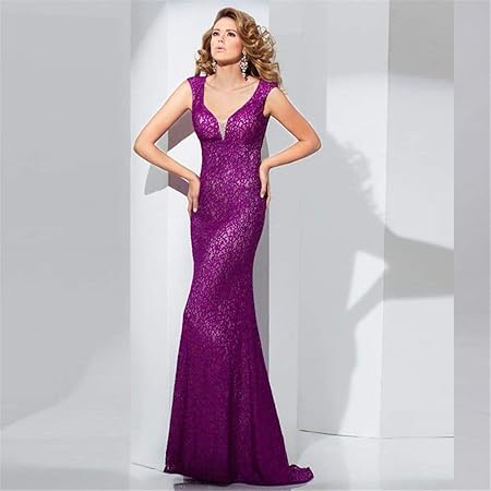 Amazon Com Chowsir Vestido Formal Para Dama De Honor Coctel Fiesta De Graduacion Encaje Con Cuello En V Sin Mangas Clothing