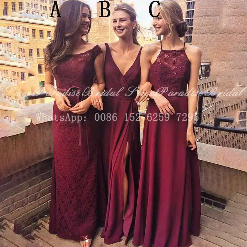Merah Marun Chiffon Lace Bridesmaid Gaun Dengan Manik Manik Vestidos 2020 Lengan Panjang Wanita Pernikahan Tamu Gaun Pesta Bridesmaid Dresses Aliexpress