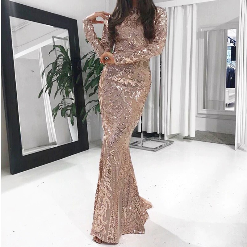 Dress Emas Elegan Berpayet Vestido Penuh Lengan Pesta Gaun Lantai Panjang Bodycon Maxi Gaun Malam Shopee Indonesia