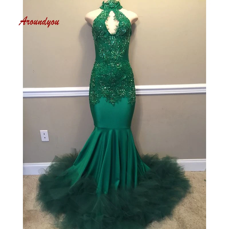 Oferta Vestido De Noche Verde Esmeralda Largo 2019 Vestidos De Graduacion Cuello Alto Corpino Con Cuentas Sin Mangas Vestido Formal De Fiesta De Noche Evening Dress Sell Evening Dresseslong Evening Dress Aliexpress