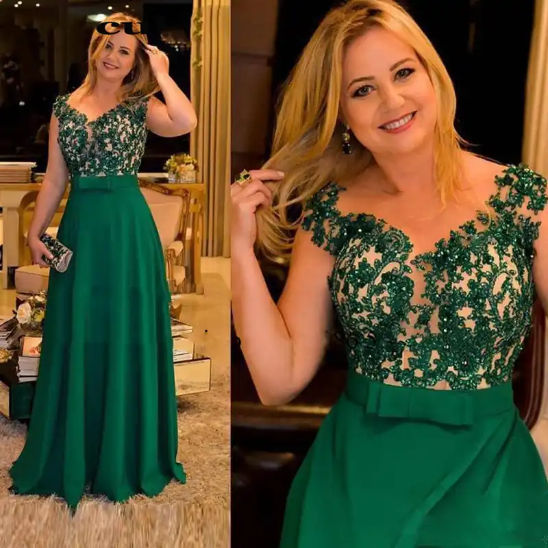 Eightale Vestido De Noche Verde Esmeralda Pala De Apliques De Cuentas Linea A De Gasa Para Madre De La Novia Vestido De Fiesta De Graduacion Formal Vestidos De Noche Aliexpress