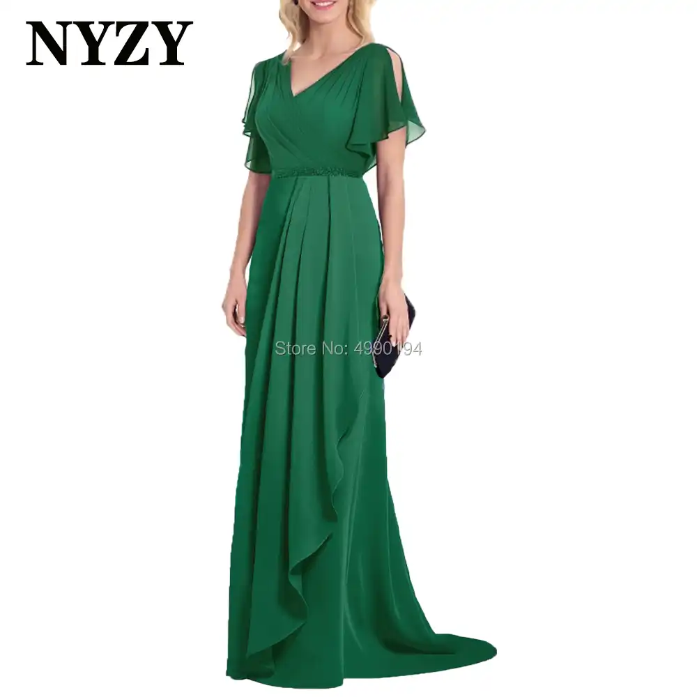 Vestido De Gasa Verde Esmeralda Con Mangas Para Madre De La Novia Vestido Formal De Fiesta Nyzy M265 2020 Vestidos Para La Madre De La Novia Aliexpress