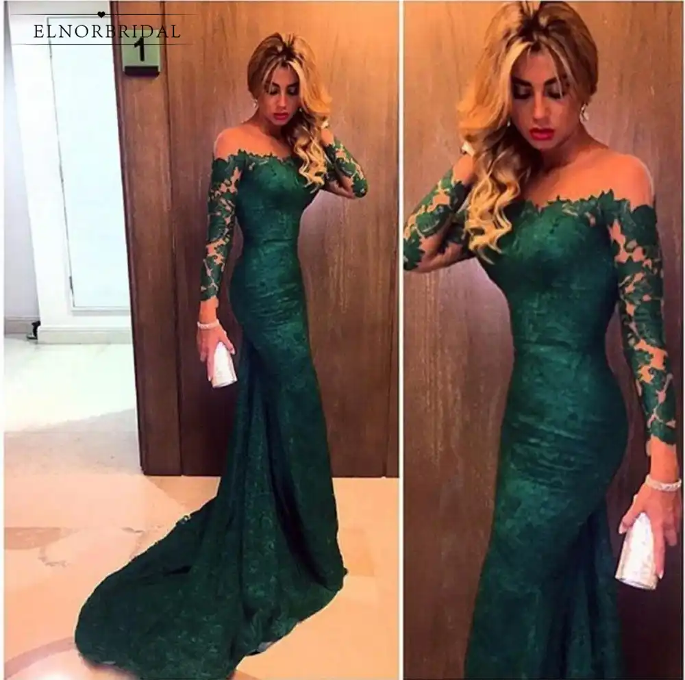 Vestidos De Noche De Manga Larga De Encaje Verde Esmeralda Vestidos De Noche 2020 Sin Hombros