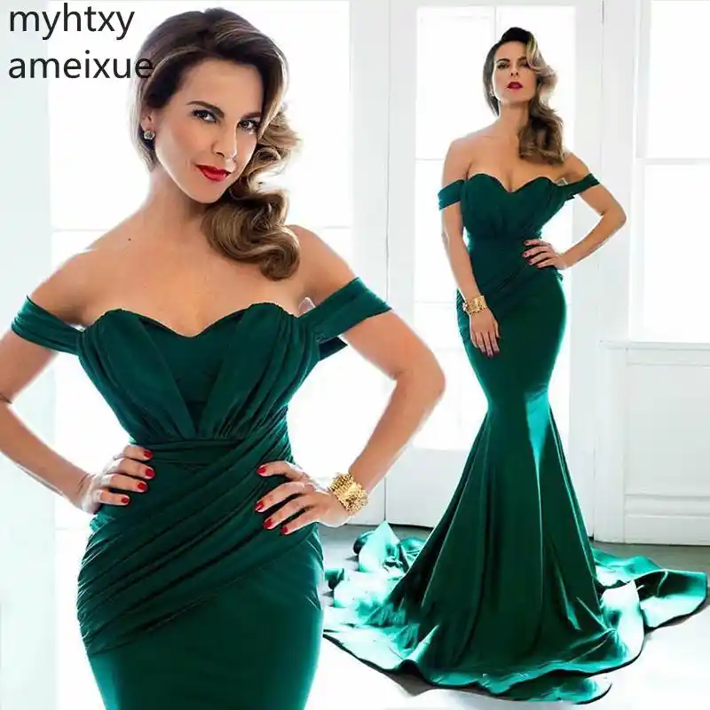 Vestido De Noche Verde Esmeralda Arabe Sirena Larga Formal Para Mujer Latina Sin Hombros Para Fiesta Graduacion Vestidos De Noche Aliexpress