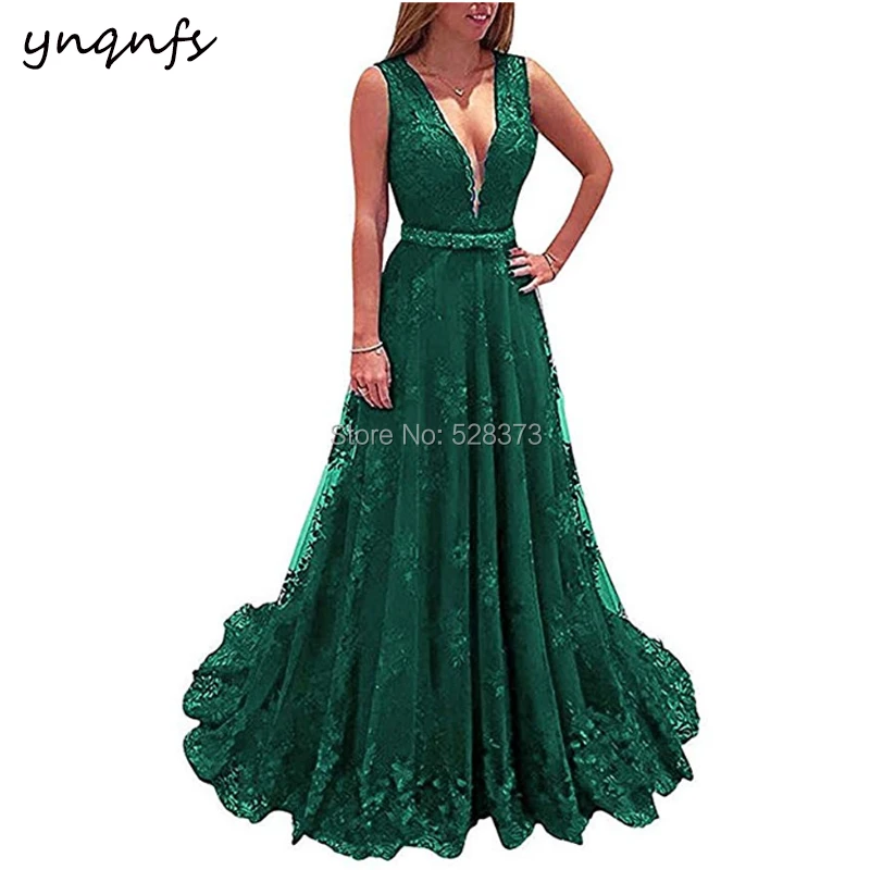 Ynqnfs 2018 Gran Oferta Vestidos De Encaje Madre De La Novia Con Envoltura Bufanda Verde Esmeralda Sexy Cuello Pico Vestido Formal Fiesta Vestidos Para La Madre De La Novia Aliexpress