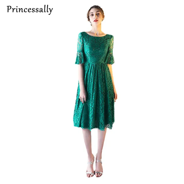 Vestido De Noche Corto De Encaje Elegante Verde Esmeralda Media Manga Formal Gown Formal Lace Evening Dressesrobe De Soiree Aliexpress