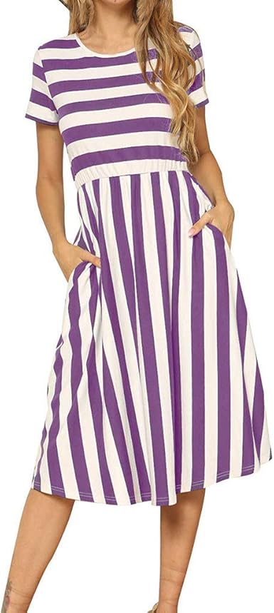 Sturrly Vestido Casual De Manga Corta Con Estampado De Rayas Y Bolsillos Para Mujer Morado Small Amazon Es Ropa Y Accesorios
