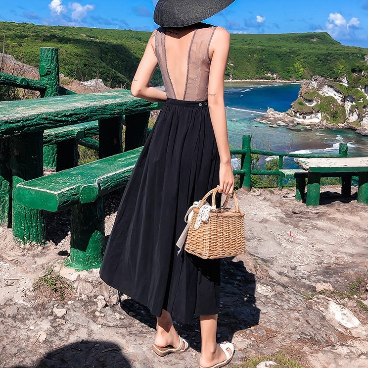 Vestido Sexy Para Playa De Mujer Pantalones Largos Traje De Bano Negro Ropa De Playa Para Mujer Espalda Abierta Traje De Bano Falda De Fiesta Coreana Escote Halter Cover Up Aliexpress