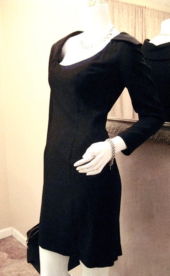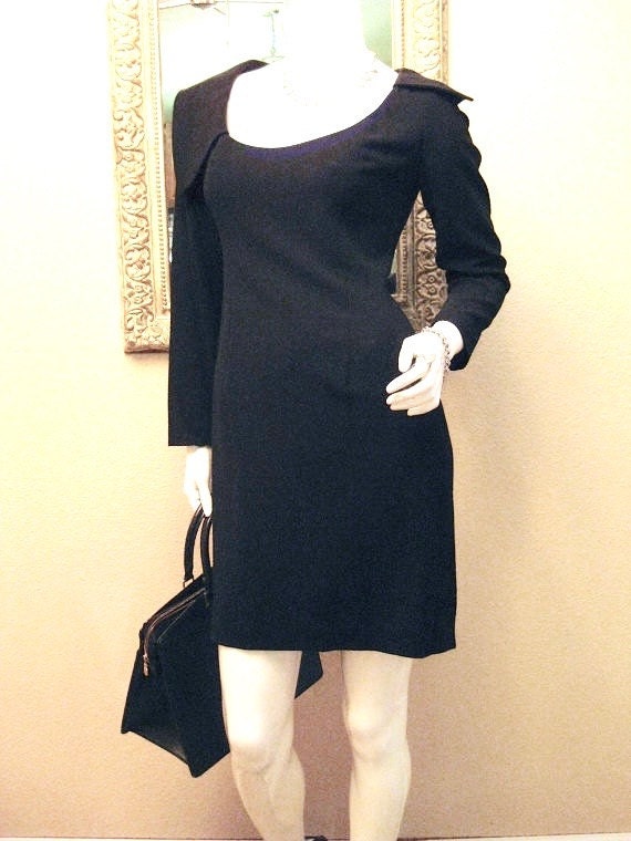 80s Herve Leger Dress 8 Black Wool Cocktail Party Dress Etsy