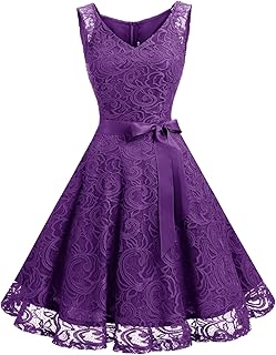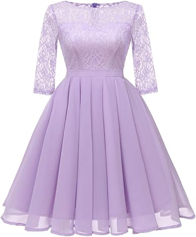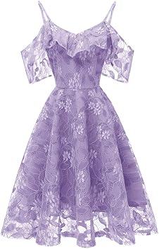 Mujer Vestido Corto Elegante Sexy Cuello V Raya Talla Grande Top Puro Con Manga Dama De Honor Para Boda Noche Fiesta Vestido De Encaje Violeta Amazon Es Ropa Y Accesorios
