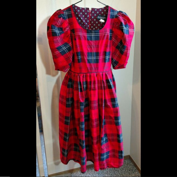 Ropa Para Mujer Vintage Christmas Plaid Midi Puff Sleeve Dress Size M Retro Vestidos Vestidos Ropa Para Mujer