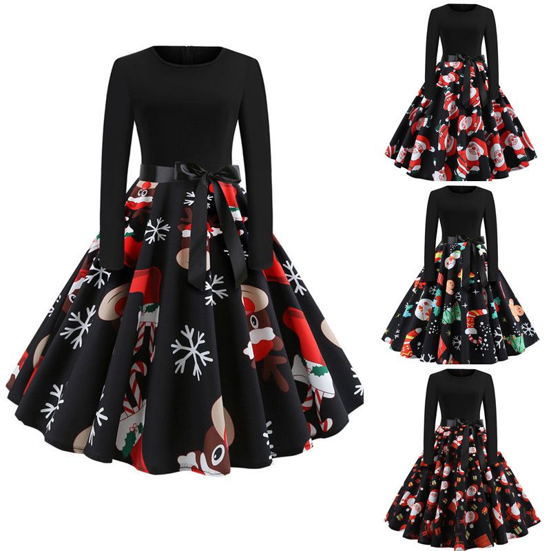 New 2019 Christmas Hepburn Vintage Vestido De Festa Dress Female T