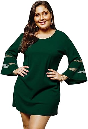 Vestidos De Noche Cuello Redondo De Las Mujeres De Gran Tamano Vestido Corto Color Solido Vestido De Fiesta Swing Para Mujer Color Verde Tamano Xxl Amazon Es Hogar
