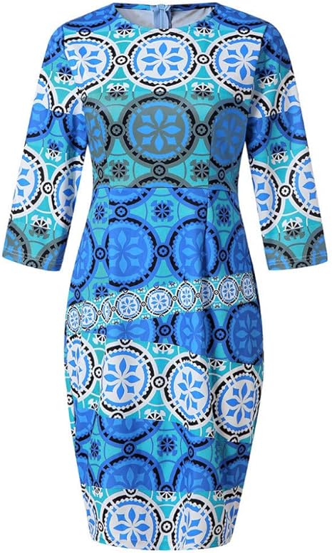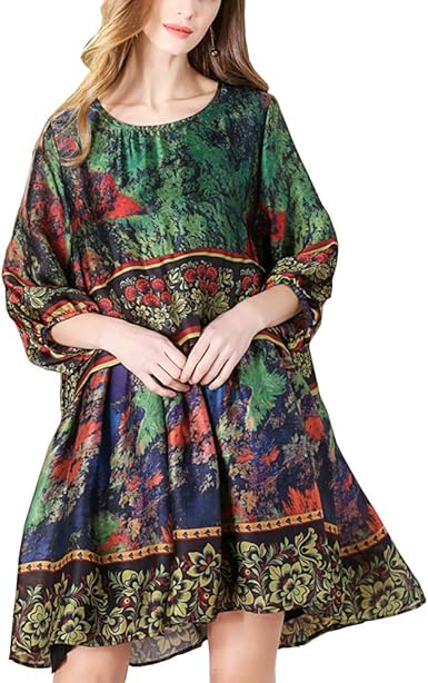 Vestido Estampado Retro Suelto De Gran Tamano Para Mujer Cuello Redondo De Verano 3 4 Manga Larga Cobertura Vestido Largo Informal Amazon Es Ropa Y Accesorios