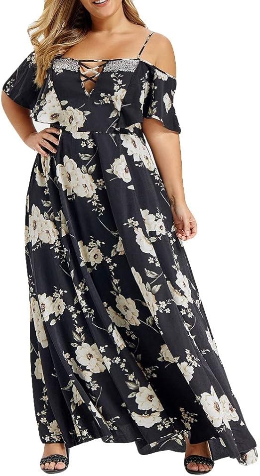 Mymyguoe Vestido De Gran Tamano Para Mujer Con Hombros Descubiertos Vestido Mujer Verano Vestido Largo Con Estampado De Flores Bohe Estampado De Flores Manga Corta Y Frias Mujer Vestidos
