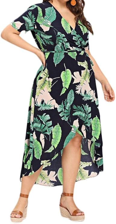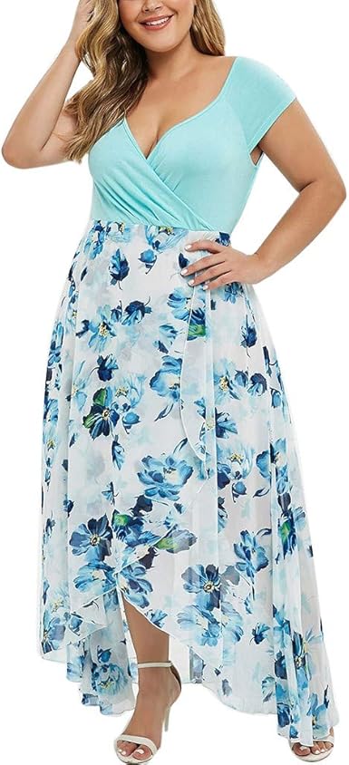Uribaky Vestido Largo De Gran Tamano Para Mujer Vestido Estampado Floral Vestido Informal De Verano Honda Manga Corta Dobladillo Grande Falda De Una Linea Para Diario Amazon Es Ropa Y Accesorios
